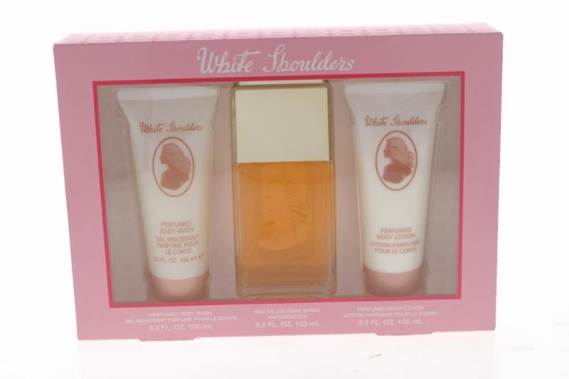 WHITE SHOULDERS(W)(W/B)3PC SET(4.5oz EDC SP, 3.3oz Perfumed Body Lotion,3.3oz perfumed body wash) FOR WOMEN. DESIGNER:Evyan